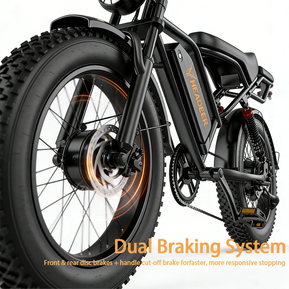 HEADEER BK20 Electric Bicycle, 250W 48V 20Ah Battery, 80KM Range, 20 Inch Fat Tire, City Mountain Electric Bike, Disc Brakes